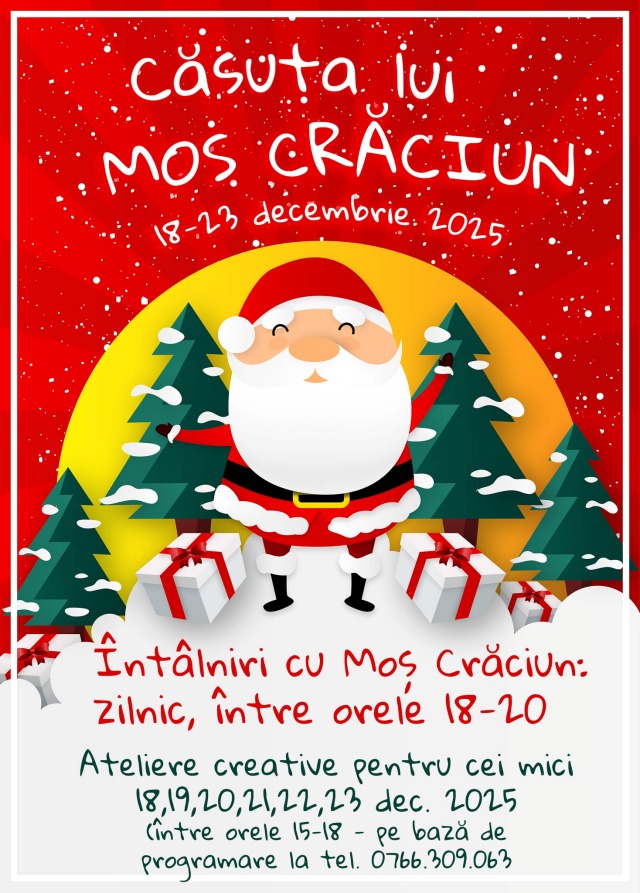 Atelierul lui Moș Crăciun se deschide tot joi, iar cei dornici să devină spiriduși pot participa la activități creative în grupe de câte 12 copii, între orele 15:00 și 18:00. Participanții primesc toate materialele necesare și pleacă acasă cu propriile creații și o diplomă de spiriduș. De asemenea, fiecare copil primește bomboane la intrare, însă locurile sunt limitate, iar accesul se face doar pe bază de programare telefonică.